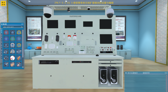 装置是一款综合型的建筑智能化工程技术专业的实训考核装置,其具备虚实结合训练和硬件实操训练两种模式,能够系统地训练学生在设备安装、设备接线、设备调试、系统设计、设计编程、运行维护等各个方面的专业技术能力。