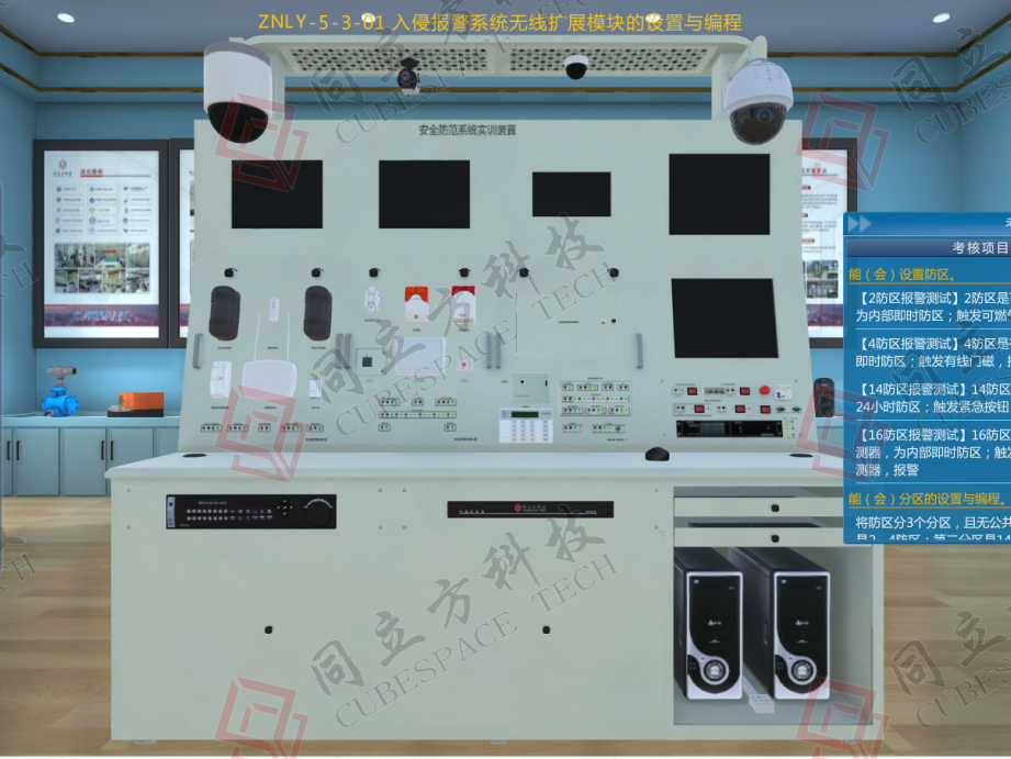 详情同立方CubeBox-E-Ⅱ型建筑设备监控虚实结合一体化实训装置是一款集3D资源学习、虚拟仿真训练、DDC编程与上位机组态监控于一体的综合性实训装置,适用于建筑电气与智能化、建筑智能化工程技术等专业主干课程的理论教学与实践教学,采用虚实结合模式,将虚拟场景与实际控制器进行信号连通,满足系统信号的控制与反馈,培养学生在点位设计、接线、编程、集成、开发、调试、运行、检修及维护等方面的专业技术能力。