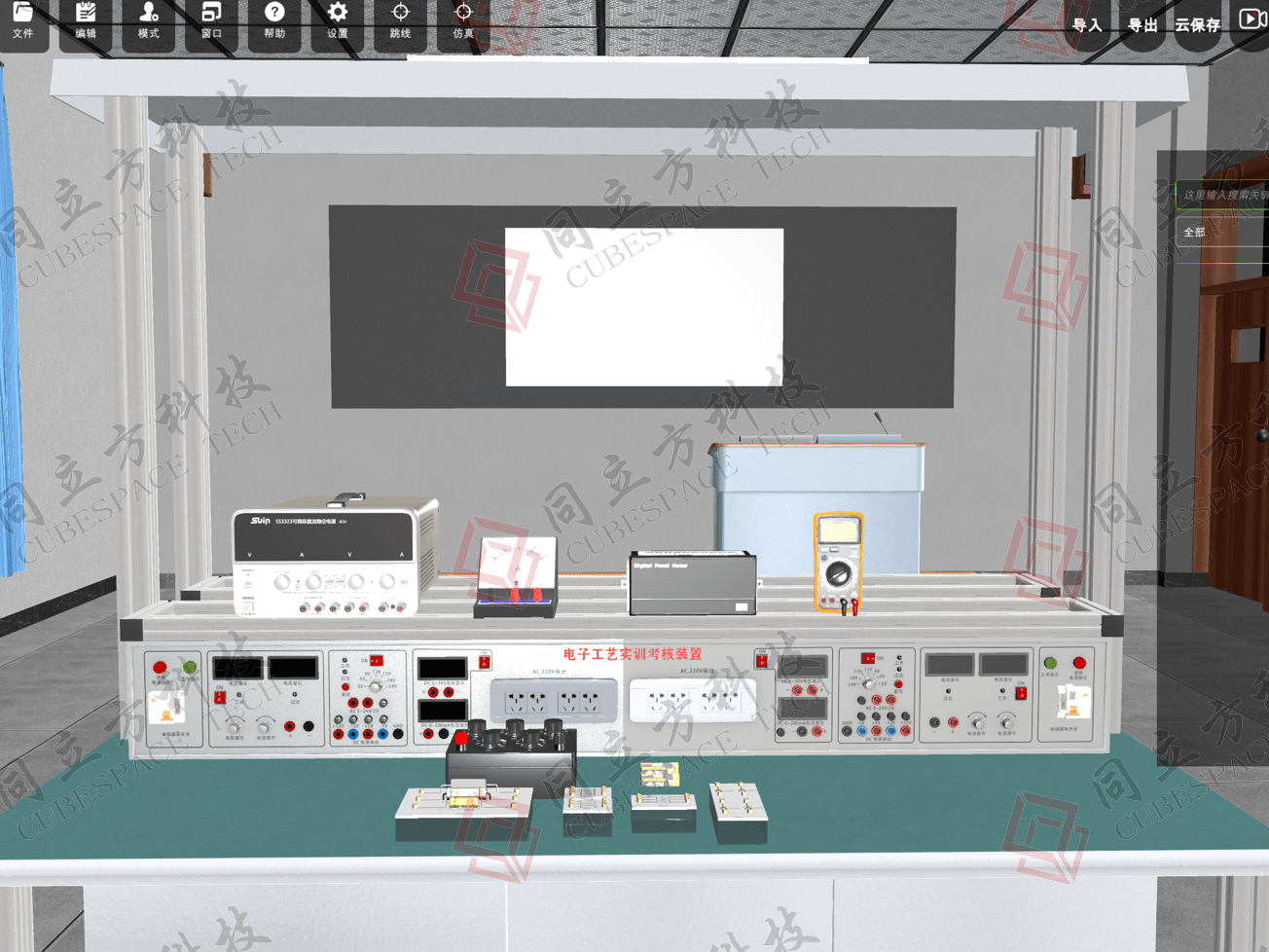 详情电工电子技术虚拟仿真教学软件具备3D资源学习、电工基础虚拟仿真训练、模拟电子虚拟仿真训练、数字电子虚拟仿真训练等功能,适用于电气、机电、电子信息、自动化等专业群课程的理论与实践教学,培养学生基本理论认知、原理分析、电路搭建、性能测定、系统调试及故障检测等多方面的专业技术能力。