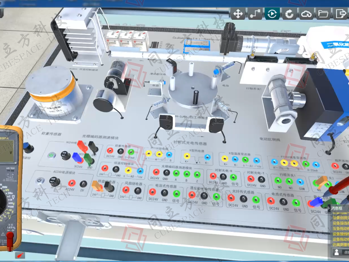 详情集3D资源学习、传感器实训箱仿真训练、传感器应用场景训练、过程评价考核于一体,可在三维虚拟仿真场景中进行传感器应用系统的设计、认知、接线、编程、调试、测量、运行与维护等操作。适用于核心课程的理论与实践教学。