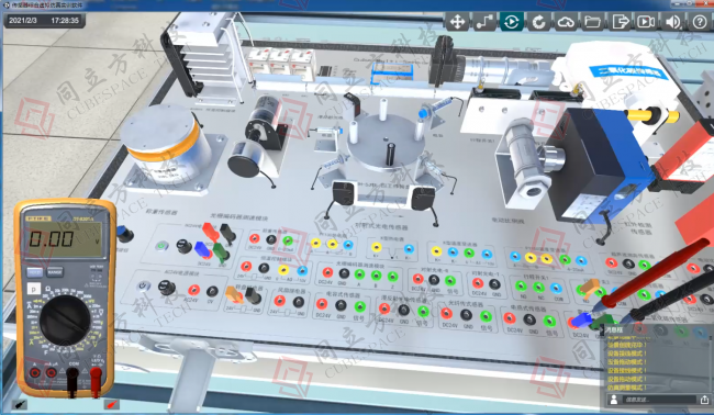 集3D资源学习、传感器实训箱仿真训练、传感器应用场景训练、过程评价考核于一体,可在三维虚拟仿真场景中进行传感器应用系统的设计、认知、接线、编程、调试、测量、运行与维护等操作。适用于核心课程的理论与实践教学。
