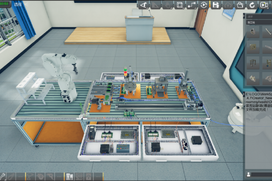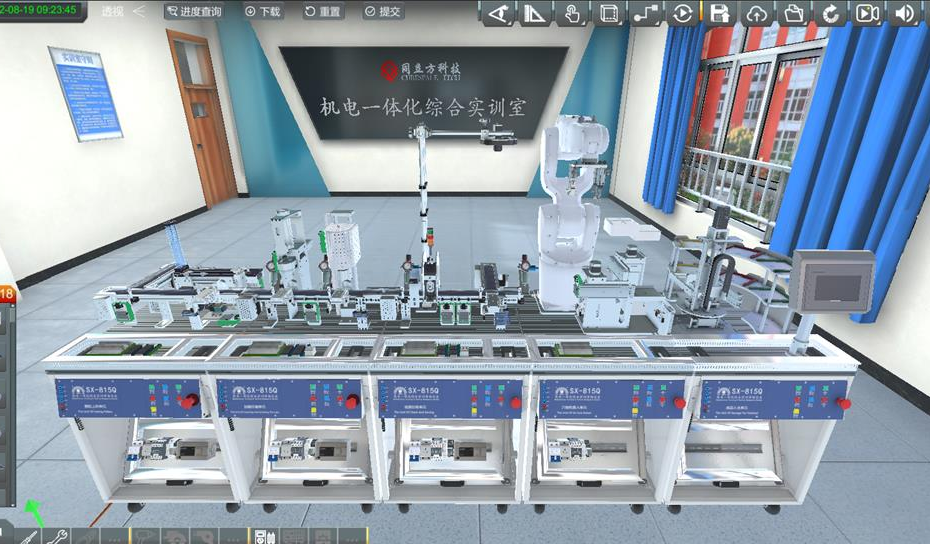 软件集3D资源认知学习、产线装调技术虚拟仿真训练于一体,旨在培养学生在设备及结构认知、系统设计、机械装配、线路设计、气路装配、工具使用、仪表测量、设备调试、PLC编程调试、工业机器人编程调试及运行与维护等方面的专业技术能力。