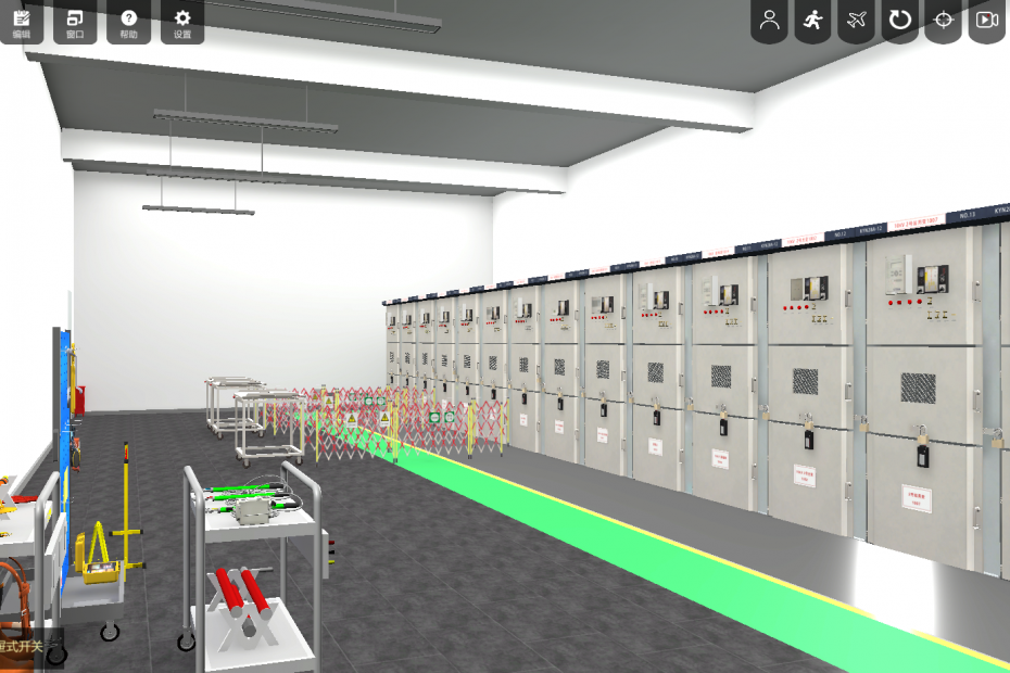 以10kV工厂配电室、0.4kV配电间为依据,采用虚拟仿真技术对设备进行仿真建模,对系统运行进行仿真,对变配电室的日常运行、倒闸操作、设备拆解等任务进行仿真,为教学提供认知学习、操作练习等功能。