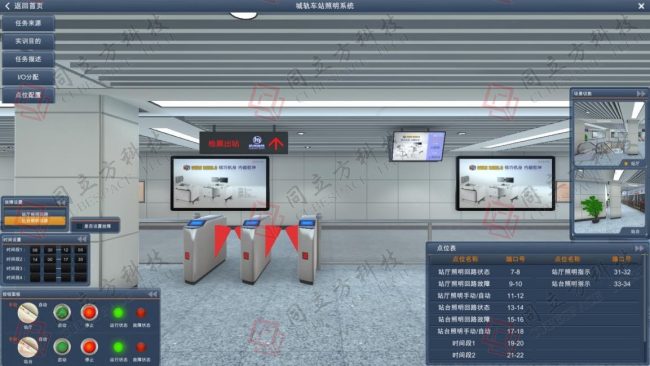 采用虚实结合的模式,含城轨空调系统实训模块、城轨排水系统实训模块、城轨车站照明系统实训模块、城轨车站低压配电系统实训模块、城轨车站垂直梯实训模块,同时将虚拟场景与实际控制器进行信号连通,满足系统信号的控制与反馈,培养学生轨道交通环控控制运营等技术各课程中的专业知识,培养学生在安装、布线、接线、编程、集成、开发、调试、运行、检修及维护等方面的专业技术能力。