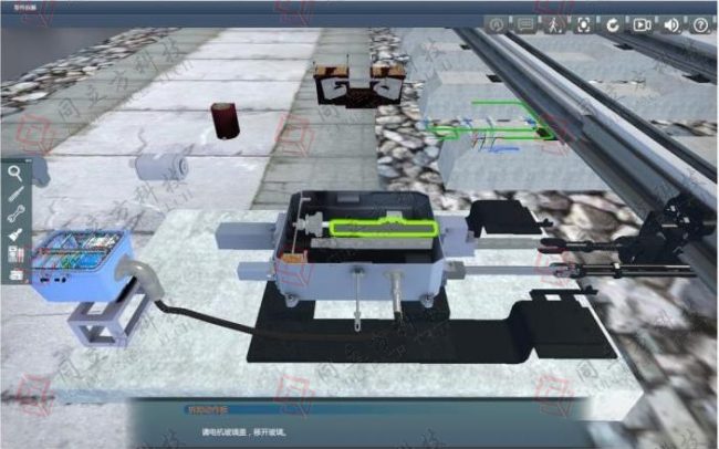 以 ZD(J)9型号的电动转辙机为开发蓝本,通过三维虚拟仿真技术模拟现场线路场景,模拟信号工真实作业环境:包括轨道线路环境,转辙机的安装操作,转辙机的结构拆装,转辙机的维护保养操作,通过在3D实景线路漫游,结合虚拟仿真综合教学平台,集理论认知学习、虚拟仿真训练、过程评价考核于一体,针对电务信号岗位专业技能的学习,培养学生转辙机的设备认知、设备检查、控制接线、操作维护、故障处理等多方面的专业技术能力。