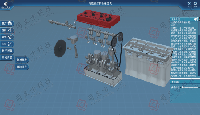 以三维虚拟仿真案例为驱动,围绕知识结构开展理论与实践教学,在平面连杆机构、凸轮机构、间歇运动机构、带传动、链传动、齿轮传动、蜗杆传动、齿轮系、连接、轴、轴承等章节内容中将相应的案例以三维虚拟仿真形式呈现,结合仿真交互技术,培养学生掌握常用机构和通用零件的基本理论和基本知识,能进行简单机械及传动装置设计、安装与维护等职业技术能力。